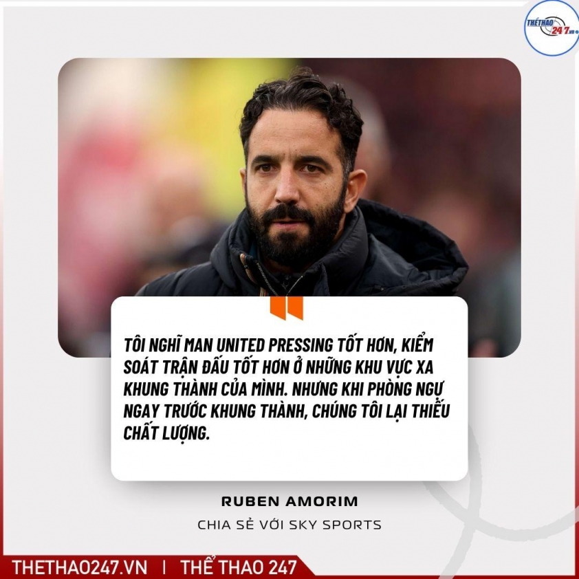 “Tôi nghĩ chúng tôi pressing tốt hơn, kiểm soát trận đấu tốt hơn ở những khu vực xa khung thành của mình. Nhưng khi phòng ngự ngay trước khung thành, chúng tôi lại thiếu chất lượng. Đó là điều chúng tôi cần phải giải quyết,” Amorim chia sẻ.