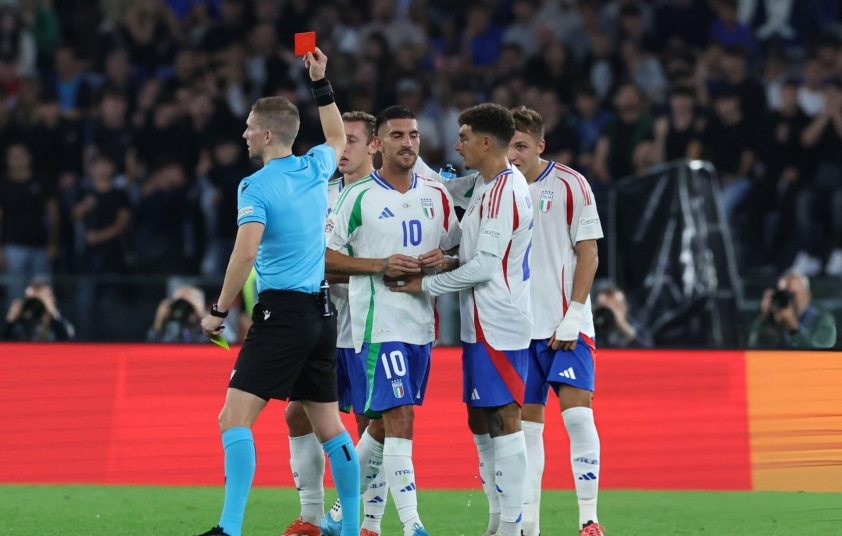 Italia tiếp tục duy trì tinh thần hưng phấn khi Retegui thực hiện cú đá bồi chính xác, nâng tỷ số lên 2-0 ở phút thứ 24. Tuy nhiên, sau khi có được hai bàn thắng, đội chủ nhà bắt đầu chủ quan và phải chịu hậu quả. Đến phút 40, tiền vệ Pellegrini nhận thẻ đỏ trực tiếp do pha phạm lỗi nguy hiểm, đặt Italia vào thế bất lợi.