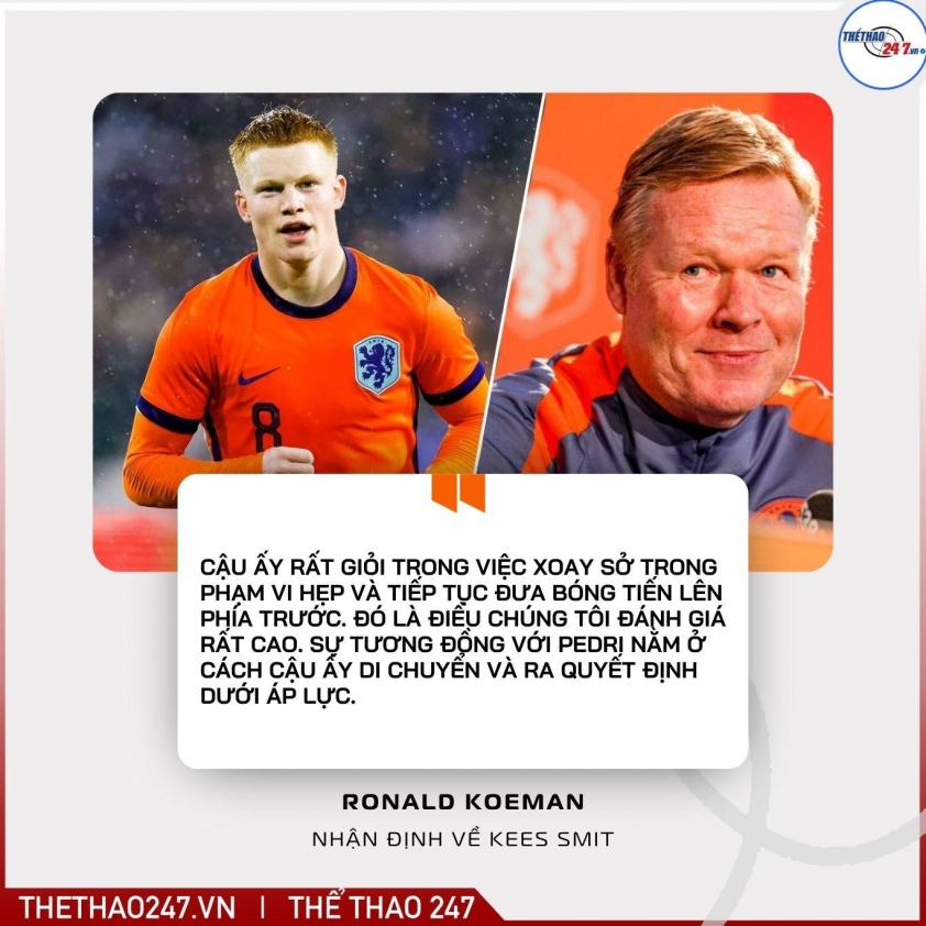 Người Hà Lan đặt kỳ vọng rất lớn vào việc Smit sẽ trở thành một trong những tiền vệ xuất sắc nhất thế giới, và Koeman không ngần ngại so sánh anh với ngôi sao Barcelona.
