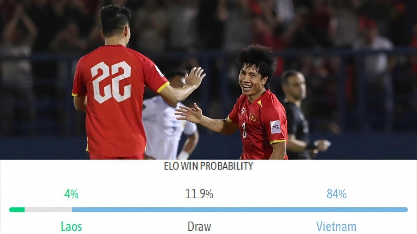 Ở chiều ngược lại, Việt Nam sở hữu ELO 72 (cao gần gấp đôi Lào) đồng thời đang xếp số 1 khu vực, khẳng định sức mạnh vượt trội cả về năng lực lẫn bản lĩnh trận mạc. Những con số cho thấy Việt Nam áp đảo toàn diện với 84% khả năng chiến thắng, trong khi tỷ lệ hòa chỉ ở mức 12%. Điều này cho thấy nếu chơi đúng phong độ, đoàn quân áo đỏ hoàn toàn có thể kiểm soát thế trận và hướng tới một thắng lợi trọn vẹn.