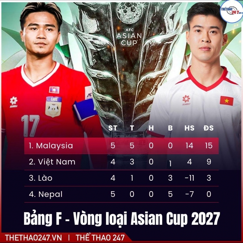 Hiện tại, Việt Nam xếp thứ 2 bảng F với 9 điểm, kém đội dẫn đầu Malaysia 3 điểm (hiệu số +9 so với +4). Vì chỉ đội nhất bảng mới giành vé dự vòng chung kết Asian Cup 2027, nên việc giành 3 điểm tại Lào là bắt buộc nhưng 3 điểm thôi là chưa đủ. Việt Nam cần ghi càng nhiều bàn càng tốt để gia tăng hiệu số và chờ Malaysia sảy chân ở lượt đấu còn lại. Chính vì vậy, trận đấu này không chỉ là chuyện thắng hay thua, mà còn là bài kiểm tra bản lĩnh, khả năng triển khai tấn công và độ sắc bén trong dứt điểm của đoàn quân áo đỏ.