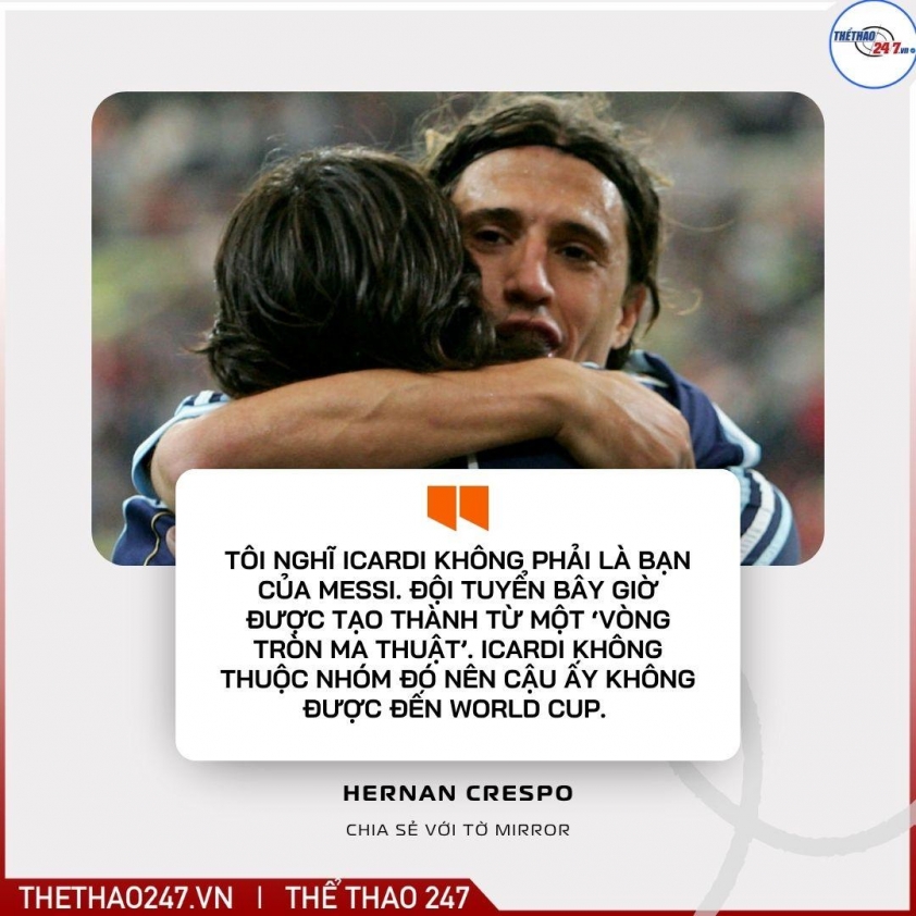 Khi ấy, tờ The Mirror tiết lộ lý do Icardi bị gạt tên là vì anh “không thuộc nhóm thân cận” của Messi trong phòng thay đồ. Cựu tiền đạo Argentina Hernan Crespo thậm chí từng nói Icardi bị “ngó lơ” vì nằm ngoài “vòng tròn ma thuật” của Messi: “Tôi nghĩ Icardi không phải là bạn của Messi. Đội tuyển bây giờ được tạo thành từ một ‘vòng tròn ma thuật’. Icardi không thuộc nhóm đó nên cậu ấy không được đến World Cup. Đó là quan điểm của tôi.”