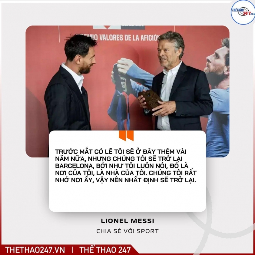 Messi bộc bạch: “Tôi sẽ trở lại, đó là điều chắc chắn. Khi ấy, tôi sẽ đến sân như một cổ động viên bình thường, theo dõi đội bóng và tận hưởng cảm giác trở thành fan thực sự. Trước mắt tôi vẫn còn vài năm gắn bó với nơi hiện tại, nhưng rồi cả gia đình sẽ về Barcelona. Như tôi đã từng nói, đó là nơi thuộc về tôi, là mái nhà của tôi. Chúng tôi nhớ Barcelona rất nhiều và chắc chắn sẽ trở lại.”