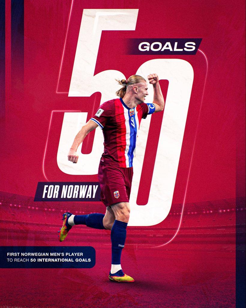 Đây là hat-trick thứ 6 của Haaland trong màu áo đội tuyển, kể từ khi anh ghi bàn thắng đầu tiên cho Na Uy ở trận thua 1-2 trước Áo tại UEFA Nations League năm 2020.