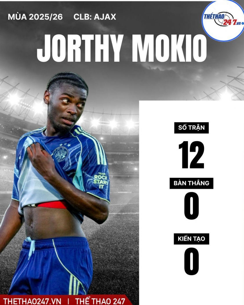 Jorthy Mokio hiện đang khoác áo U21 Bỉ, người có thể thi đấu ở vị trí tiền vệ phòng ngự lẫn hậu vệ trái và chỉ còn hơn 18 tháng trong hợp đồng với Ajax. Tiền vệ tài năng này hiện đang nóng lòng rời đội bóng lớn của Eredivisie vào năm tới.