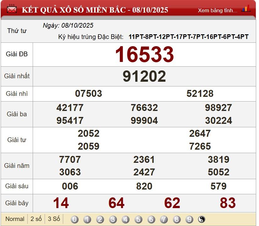 XSMB 8/10/2025 - Kết quả xổ số miền Bắc hôm nay 8/10/2025