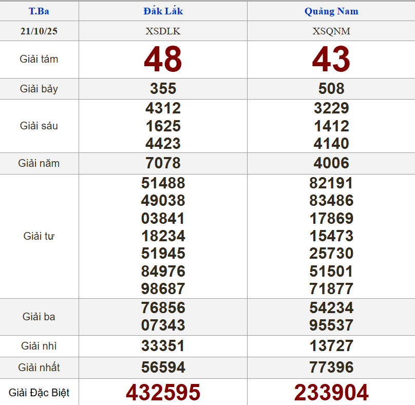 Kết quả xổ số miền Trung (XSMT) hôm nay ngày 21/10