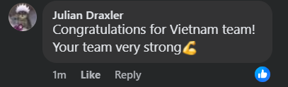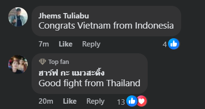 Sau trận đấu này, cổ động viên Đông Nam Á đồng loạt dành lời khen cho thầy trò HLV Cristiano Roland. Bình luận trên trang Asean Football, nhiều người viết: