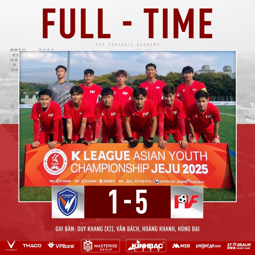 Những pha lập công của Duy Khang, Văn Bách hay Hoàng Khanh giúp U18 PVF đánh bại U18 V-Varen Nagasaki với tỉ số 5-1, qua đó giành HCĐ ở giải K League Youth Asian Championship Jeju 2025