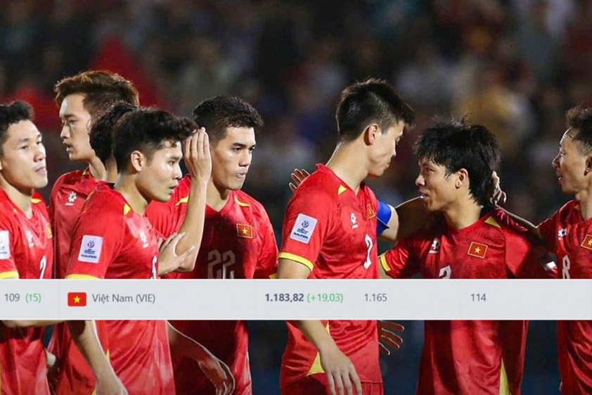 Cùng với niềm vui chiến thắng, đội tuyển Việt Nam nhận thêm tin cực vui trên bảng xếp hạng FIFA. Theo tính toán, thầy trò HLV Kim Sang Sik đã được cộng 6,09 điểm sau chiến thắng 5-0 trước Lào, qua đó tạm thời vươn lên vị trí thứ 109 trên bảng xếp hạng FIFA.