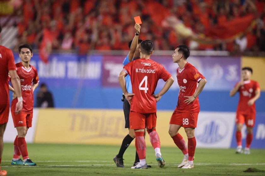 Loạt trận ngày 26/10 cũng chứng kiến nhiều trường hợp tương tự. Thể Công Viettel mất trung vệ đội trưởng Bùi Tiến Dũng vì án thẻ đỏ. Đây tiếp tục là tổn thất lớn cho hàng phòng ngự đội bóng áo lính trong chuyến làm khách của HAGL.