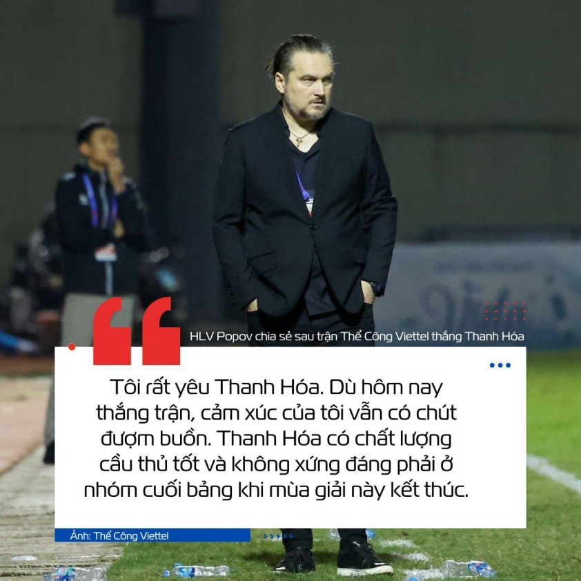 Xuyên suốt trận đấu, HLV Popov tỏ vẻ khá trầm ngâm. Phút 31 khi Đinh Viết Tú ghi bàn cho đội bóng áo lính, ông cũng không ăn mừng. Chia sẻ ở buổi họp báo sau trận, HLV Popov cho biết: