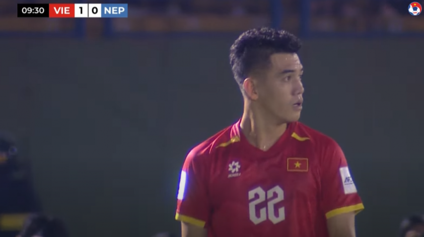 Tiến Linh vừa tung ra cú sút khá nguy hiểm nhưng thủ môn Kiran của Nepal một lần nữa cứu thua xuất sắc.