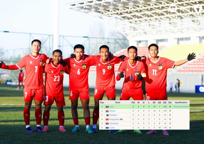 Theo đó ở lượt trận thứ 2, các cầu thủ trẻ của đội bóng xứ Triệu Voi đã đánh bại người hàng xóm U17 Campuchia với tỉ số cách biệt 5-1. Kết quả này đưa U17 Lào tạm vươn lên dẫn đầu bảng B với với 6 điểm và hiệu số (+12). Trước mắt, họ còn 3 trận đấu lần lượt gặp U17 Pakistan, U17 Kyrgyzstan và U17 Yemen. Với phong độ như hiện tại, U17 Lào được kỳ vọng sẽ có lần thứ 4 giành vé dự VCK U17 châu Á 2026.