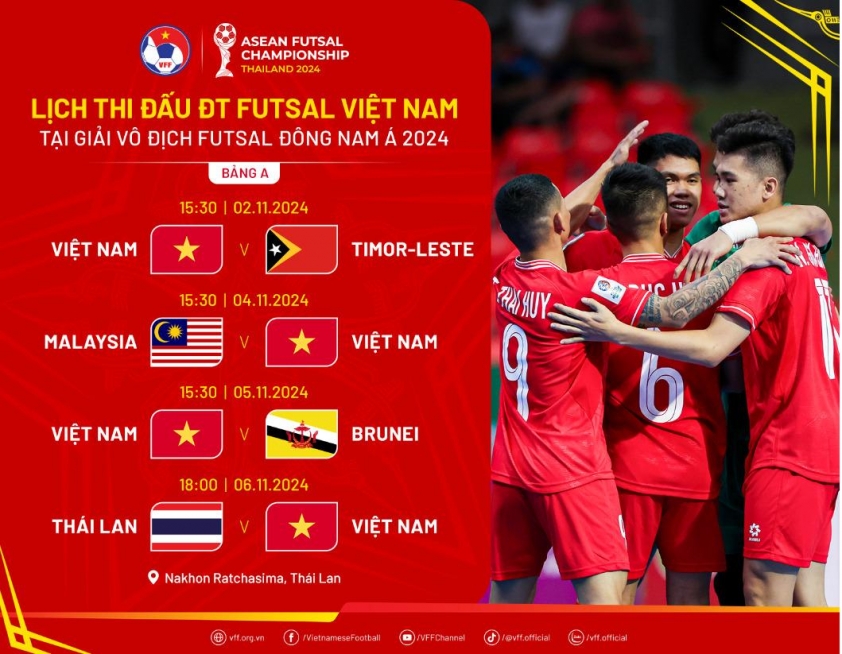 Từ ngày 2/11 đến ngày 10/11, giải vô địch futsal Đông Nam Á 2024 sẽ được tổ chức tại Thái Lan. Ở giải đấu này, ĐT futsal Việt Nam nằm ở bảng A cùng chủ nhà Thái Lan, Malaysia, Đông Timor và Brunei. Rõ ràng, Thái Lan chính là đối thủ lớn nhất đối với đoàn quân của HLV Diego Giustozzi.
