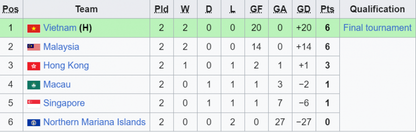 Chiến thắng này giúp U17 Việt Nam có được 6 điểm với hiệu số (+20) sau 2 lượt trận đầu tiên. Trong khi đó, chiến thắng tối thiểu 1-0 trước Hồng Kông (TQ) khiến Malaysia chỉ có được hiệu số (+14) sau 2 lượt trận, qua đó phải nhường lại ngôi đầu bảng C cho đội chủ nhà.
