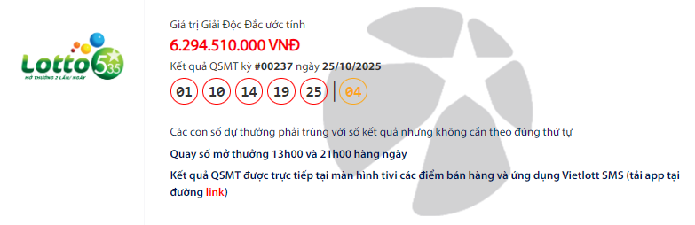 Vietlott 25/10/2025 - Kết quả xổ số Vietlott Mega 6/55, Vietlott MAX 3D ngày 25/10/2025
