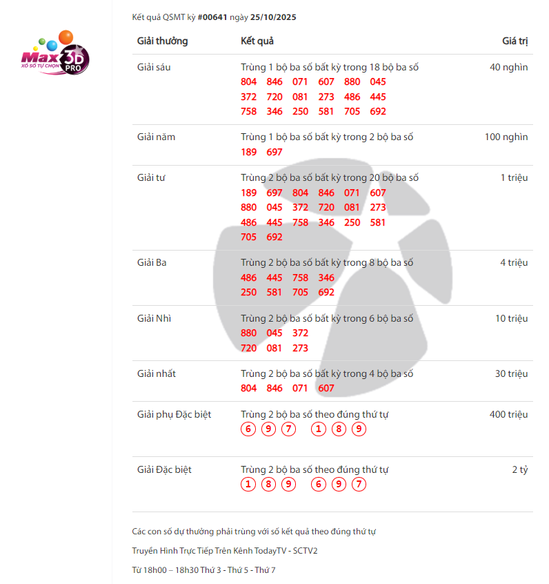 - Cơ cấu giải thưởng Vietlott Max 3D Pro