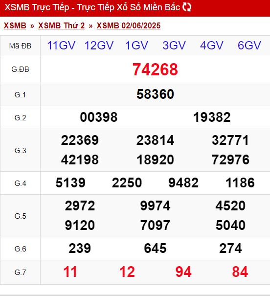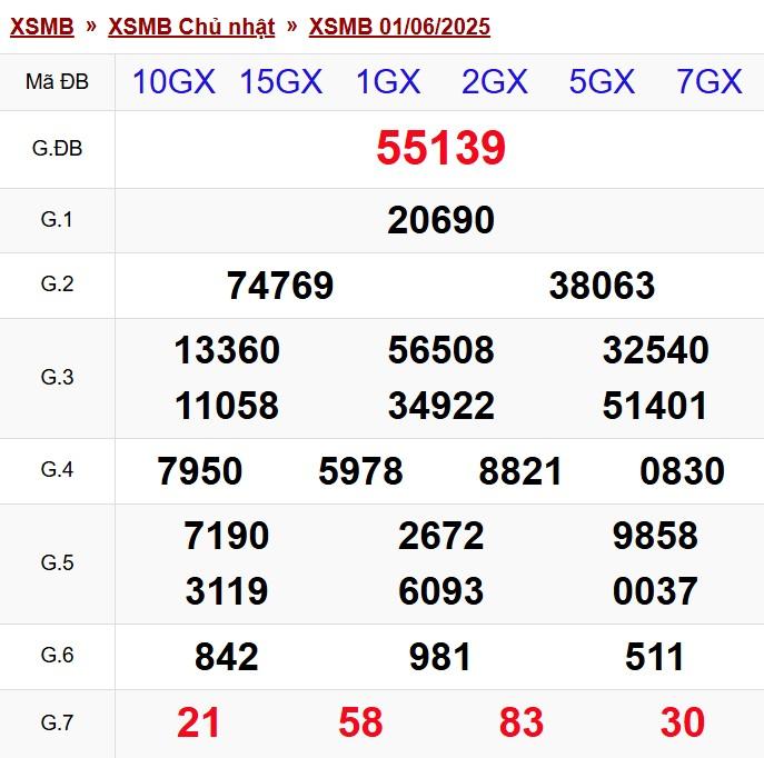 XSMB 2/6/2025 - Kết quả xổ số miền Bắc hôm nay 2/6/2025