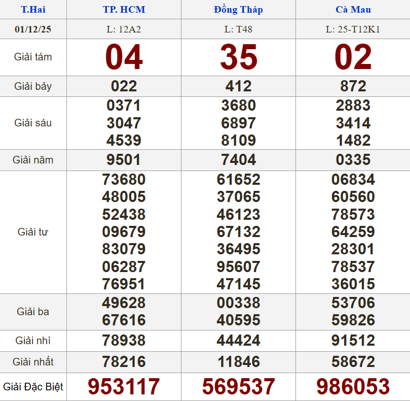 XSMN 2/12/2025 - Kết quả xổ số miền Nam hôm nay 2/12/2025