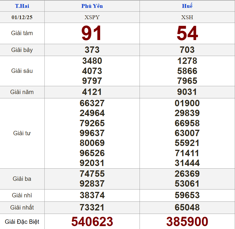 xổ số miền Trung (XSMT) hôm nay ngày 1/12