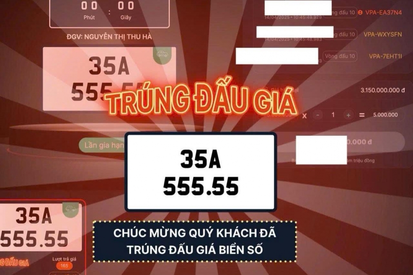 Trong các phiên đấu giá tổ chức từ ngày 10 đến 13/4, nhiều biển số đã đạt mức giá cao bất ngờ, trong đó đáng chú ý là biển 47A-888.88 (Đắk Lắk) được chốt với giá hơn 3,5 tỷ đồng.