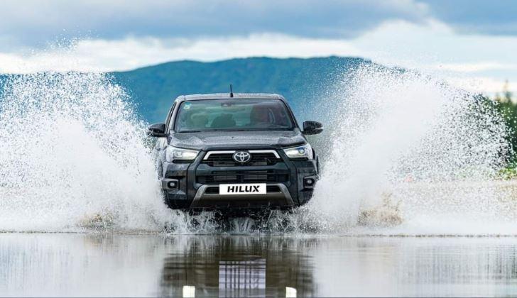 Toyota Hilux có thể vượt qua mực nước 700 mm, động cơ bền bỉ, chịu tải tốt, phù hợp khách hàng thực dụng.