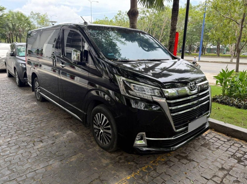 Chiếc Granvia rao bán mang màu sơn đen bóng, ngoại hình còn khá mới với lớp sơn sáng, các chi tiết như viền chrome hay chóa đèn chưa có dấu hiệu xuống cấp.