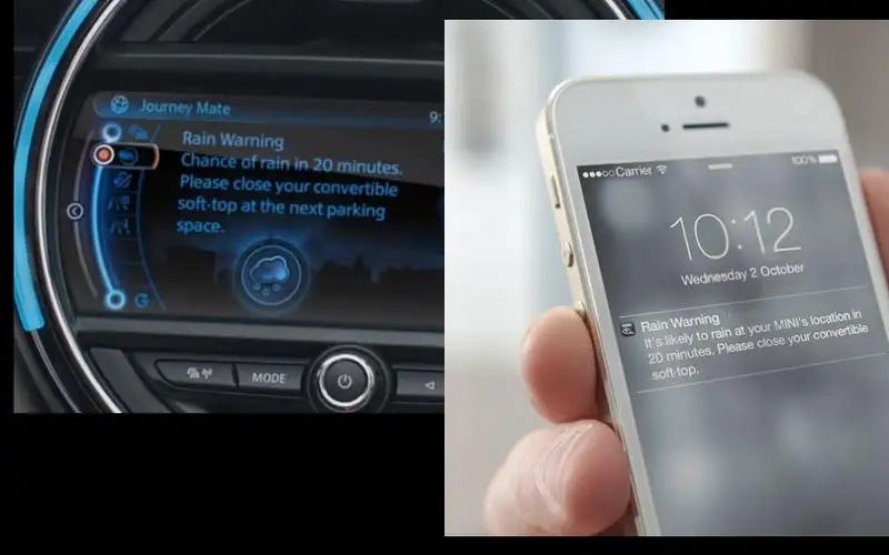Tính năng có giá 1.620 bảng Anh (tương đương 47,2 triệu đồng) này có tác dụng dự báo và cảnh báo người dùng nếu trời có dấu hiệu mưa.