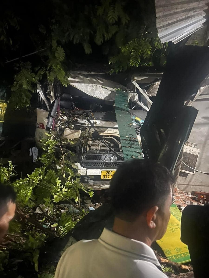 Tại hiện trường vụ tai nạn nghiêm trọng trên quốc lộ 6, chiếc xe đầu kéo đã đâm vào nhà dân, làm gãy nhiều cành cây và đổ tường nhà, trong khi đầu xe bị hư hỏng nặng.Mảnh vỡ và vết máu vương vãi khắp mặt đường và sàn nhà.