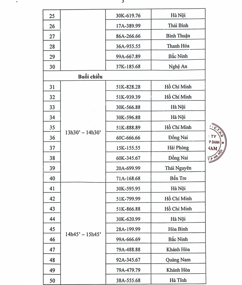 Danh sách 50 biển số được đấu giá ngày 26/9: