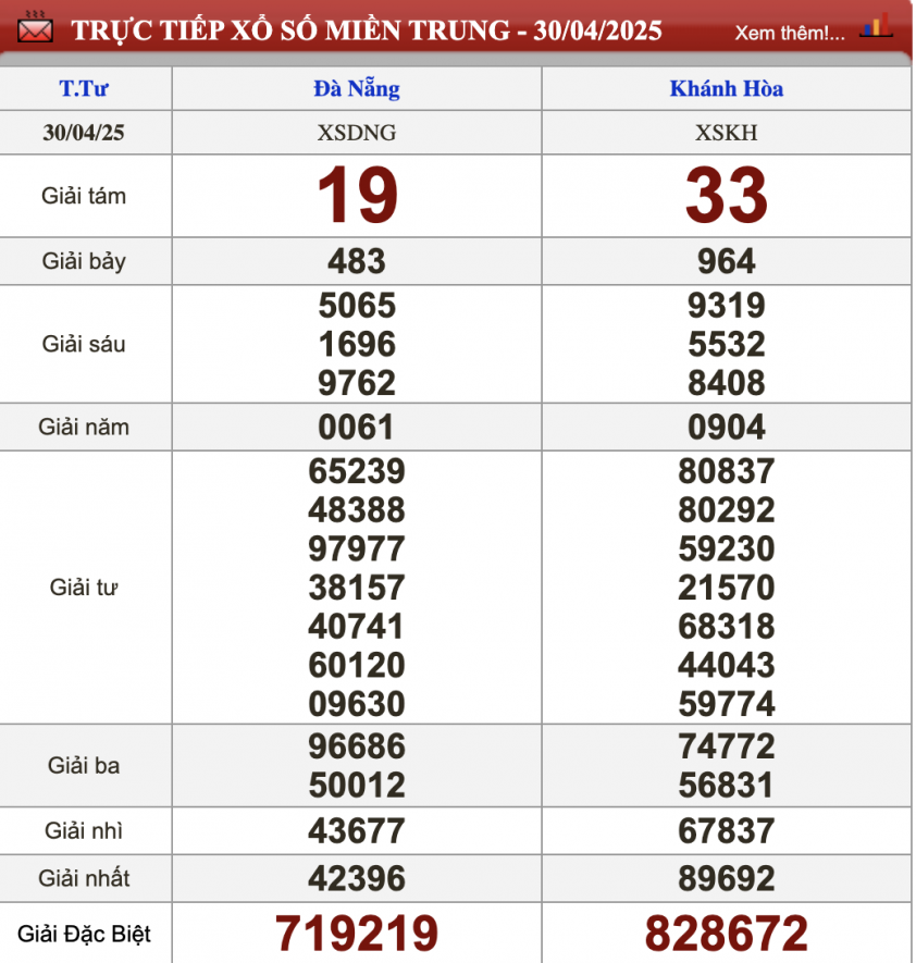 Kết quả xổ số miền Trung (XSMT) hôm nay ngày 30/4
