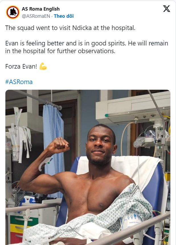 Khoảng ba giờ sau khi Ndicka ngã xuống, Roma cập nhật cho người hâm mộ trên nền tảng mạng xã hội X/Twitter khi xác nhận: "Cả đội đã đến thăm Ndicka tại bệnh viện. Evan đã cảm thấy tốt hơn và tinh thần tốt. Anh ấy sẽ ở lại bệnh viện thêm thời gian nữa để quan sát. Forza Evan!".