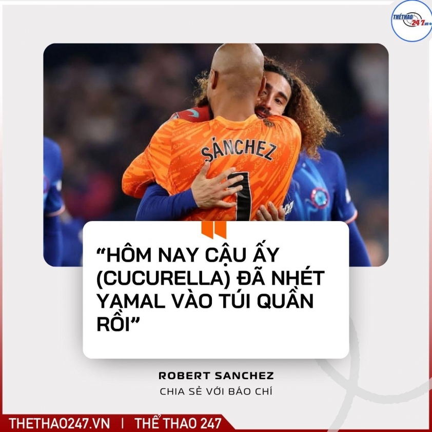 Điểm sáng của Chelsea nằm ở cái tên Marc Cucurella, người liên tục bám đuổi, tranh chấp và không để Yamal có bất kỳ khoảng trống nào. Chính vì vậy, khi được hỏi về màn trình diễn của người đồng đội, thủ thành Sanchez không ngần ngại tuyên bố: “Cậu ấy nhốt Yamal trong túi rồi.”
