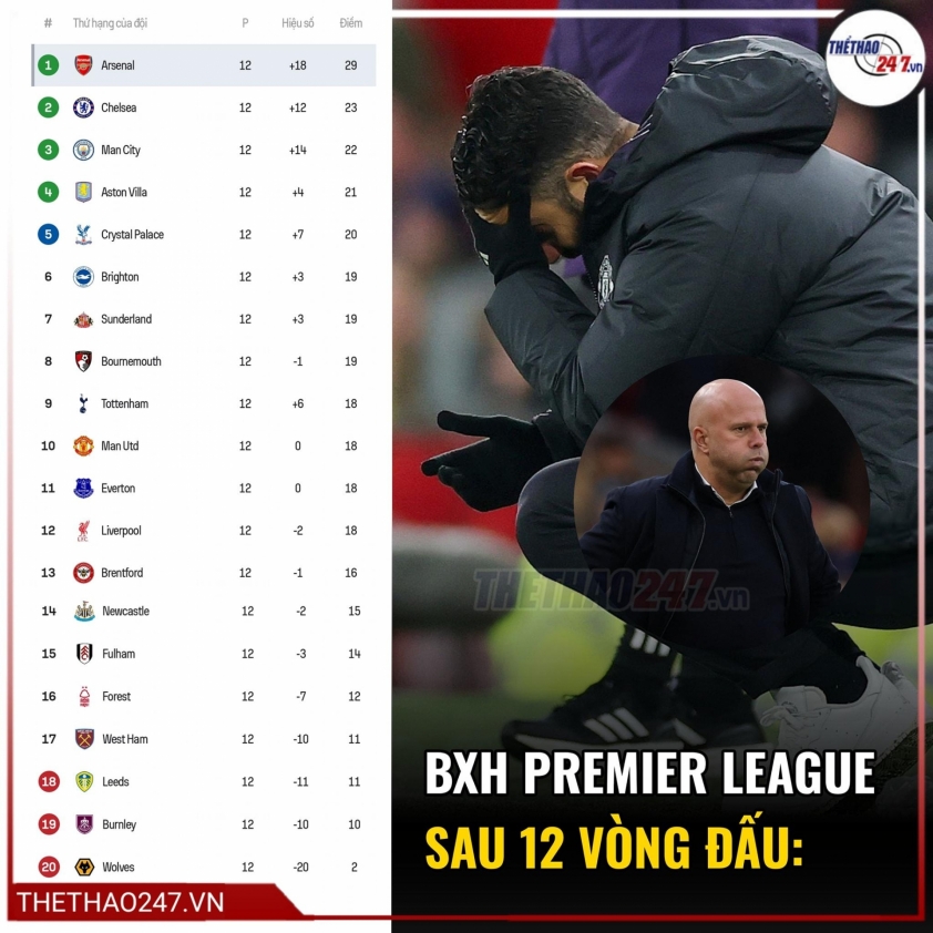Leeds, Burnley và Wolves là ba cái tên đang đội sổ tại Ngoại Hạng Anh. Leeds có được 11 điểm sau 12 trận, nhiều hơn 1 điểm so với Burnley. Còn Wolves mới chỉ có vỏn vẹn 2 điểm cho đến thời điểm này của giải đấu.