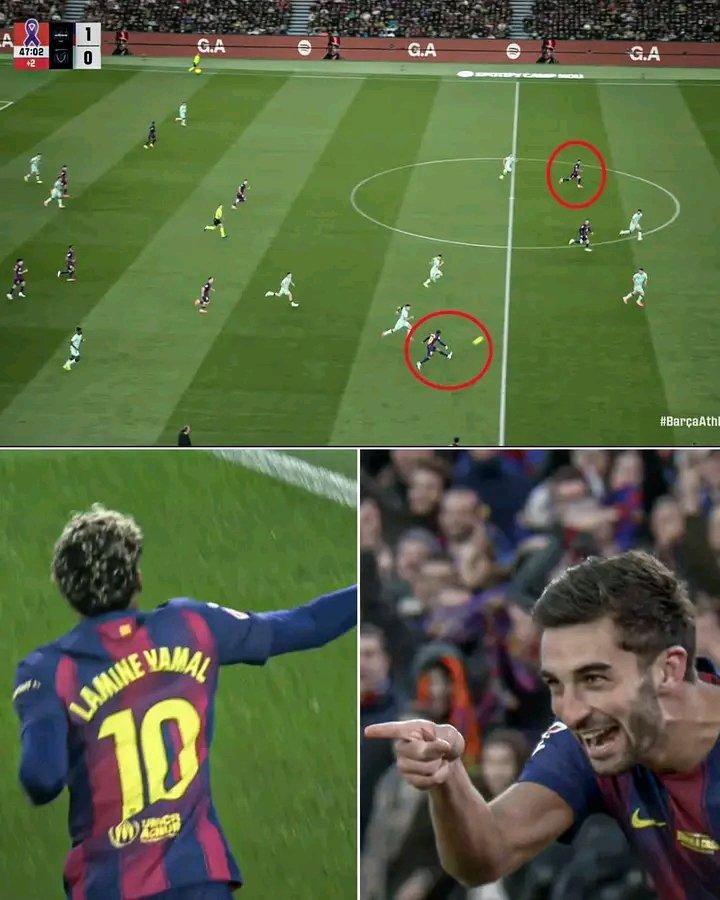 Ngay trước giờ nghỉ, Yamal tung đường chuyền bằng má ngoài chân trái, loại toàn bộ hàng thủ Athletic Bilbao, tạo điều kiện để Ferran ghi bàn nâng tỷ số. Cuối trận, anh tiếp tục bùng nổ với pha đi bóng loại 4 hậu vệ trước khi mở ra cơ hội đối mặt cho “El Tiburón”. Ban đầu trọng tài biên căng cờ việt vị nhưng VAR đã xác nhận bàn thắng hợp lệ.