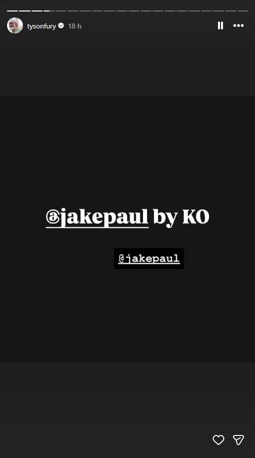 Trong một bài đăng gần đây trên Instagram, “Gypsy King” không hề do dự khi đặt niềm tin vào Paul sẽ hạ gục đối thủ lâu năm của mình bằng cách kết thúc trận đấu sớm: