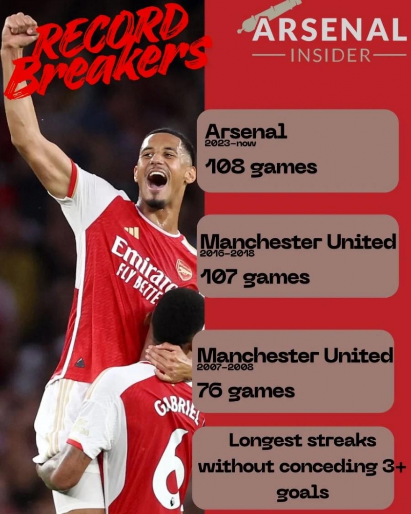 Arsenal tiếp tục khẳng định phong độ ổn định và đầy thuyết phục tại Premier League khi phá vỡ một kỷ lục tưởng như “không thể bị chạm tới” của Manchester United. Trong hơn ba năm qua, dưới thời Mikel Arteta, Pháo thủ trở thành một trong những tập thể chơi kỷ luật và chắc chắn nhất tại nước Anh, đặc biệt là ở khả năng phòng ngự. Bộ đôi trung vệ William Saliba - Gabriel Magalhaes duy trì sự ổn định đáng kinh ngạc, trong khi Cristhian Mosquera và Piero Hincapie luôn sẵn sàng bổ sung chất thép cho hệ thống phòng thủ.