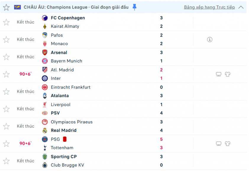 Không chỉ nhóm các ông lớn ghi dấu ấn, những đội bóng như Atalanta, Sporting CP hay Copenhagen cũng đóng góp đáng kể vào số bàn thắng khổng lồ của lượt đấu. Atalanta ghi ba bàn chỉ trong vài phút để hạ Frankfurt, Sporting thắng 3-0 trước Club Brugge, còn Copenhagen vượt qua Kairat Almaty với tỷ số 3-2 trong trận cầu kịch tính đến phút cuối.