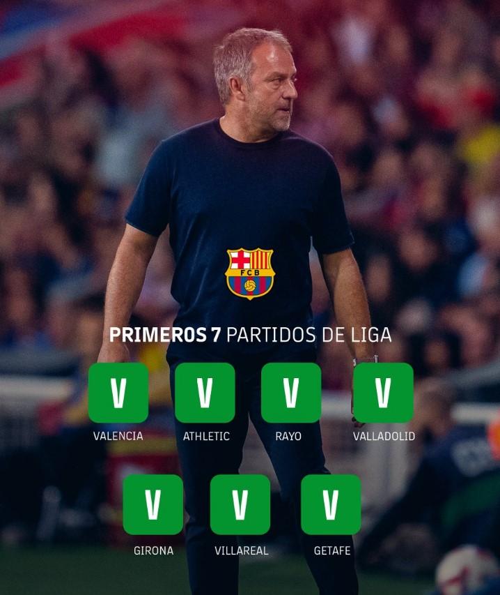 Với 7 chiến thắng liên tiếp tại La Liga, Hansi Flick đã trở thành huấn luyện viên thứ ba trong toàn bộ lịch sử Barcelona thắng bảy trận đầu tiên ở giải VĐQG Tây Ban Nha.