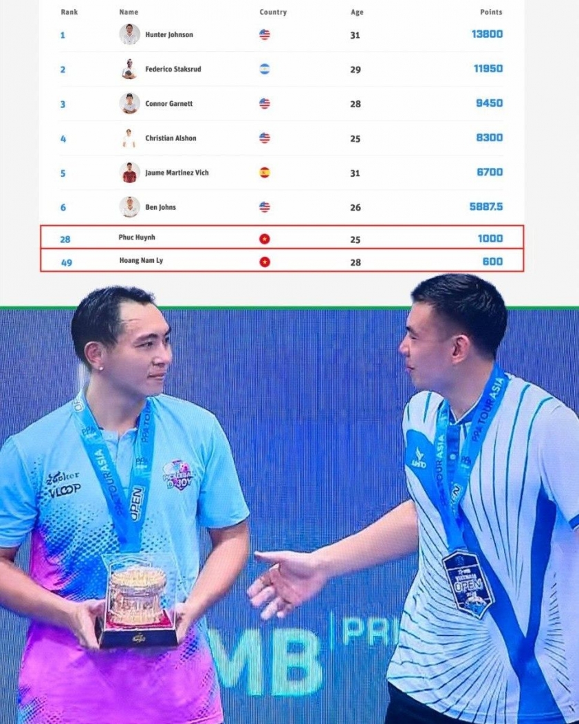 Chiến thắng 2-0 trước Trương Vinh Hiển tại PPA Malaysia Cup giúp Lý Hoàng Nam chính thức góp mặt trong Top 3 pickleball châu Á và Top 50 thế giới.