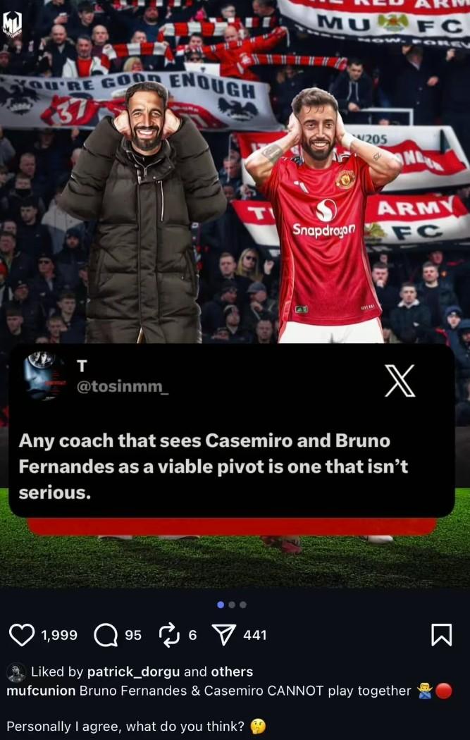 Bài đăng mà Dorgu tương tác có câu: “Bất kỳ huấn luyện viên nào coi Casemiro và Bruno Fernandes là trụ cột khả thi đều không nghiêm túc”. Không chỉ Amorim bị nhắc tên, mà hai đồng đội của Dorgu cũng bị lôi vào tranh luận. Việc một cầu thủ công khai đồng ý với quan điểm này làm dấy lên câu hỏi về sự đoàn kết trong phòng thay đồ, và liệu anh có đang ngầm phản đối cách tổ chức đội hình của HLV.
