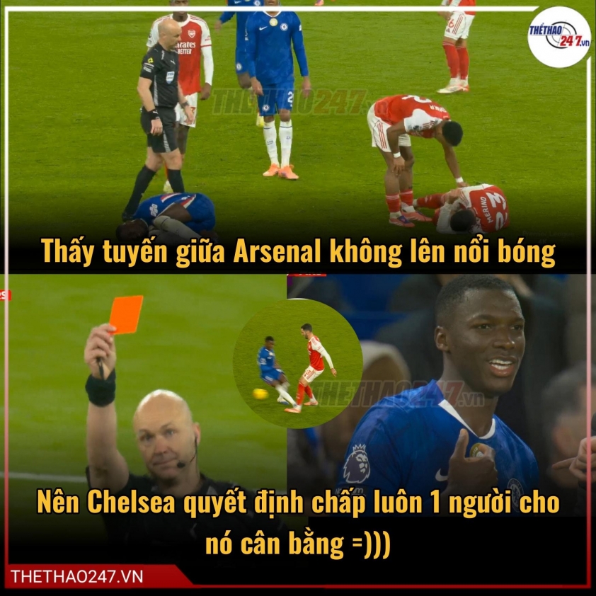 Trước khi Caicedo rời sân, Chelsea đang kiểm soát tốt trận đấu. Nhưng chiếc thẻ đỏ khiến thế trận đổi chiều. Arsenal ngay lập tức tạo ra cơ hội rõ ràng, buộc Robert Sanchez phải cứu thua xuất sắc sau cú dứt điểm hiểm hóc của Gabriel Martinelli.