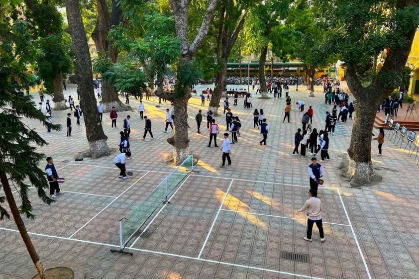 Trong khoảng hai năm trở lại đây, pickleball không còn đứng ngoài cổng trường. Tại Hà Nội, Trường THPT Phan Đình Phùng đã xây dựng 3 sân pickleball ngay trong khuôn viên, trang bị khoảng 20 cây vợt và 4 bộ lưới để học sinh chơi trong giờ ra chơi và hoạt động thể chất. Đây là một trong những trường phổ thông công lập hiếm hoi đưa pickleball vào sinh hoạt thường xuyên, thay vì chỉ dừng ở mức trải nghiệm ngắn hạn.