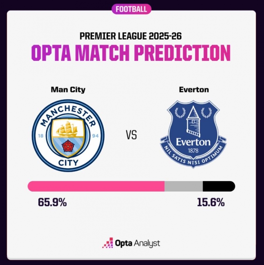 Theo mô phỏng của Opta, Man City có 65,9% cơ hội giành chiến thắng, Everton chỉ 15,6% và tỷ lệ hòa là 18,5%. Các thống kê và phong độ gần đây cho thấy thầy trò Guardiola nhiều khả năng sẽ nối dài mạch thắng, tiếp tục bám đuổi nhóm đầu bảng Premier League.
