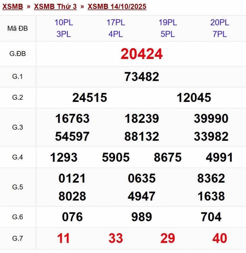 XSMB 14/10/2025 - Kết quả xổ số miền Bắc hôm nay 14/10/2025