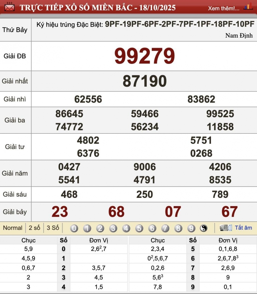 Kết quả xổ số miền Bắc (XSMB) hôm nay ngày 18/10