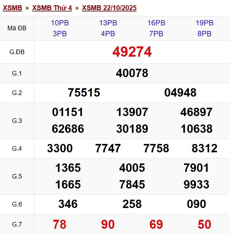 XSMB 22/10/2025 - Kết quả xổ số miền Bắc hôm nay 22/10/2025