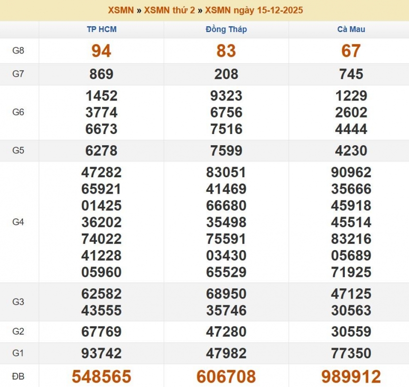 Kết quả xổ số miền Nam (XSMN) ngày 15/12