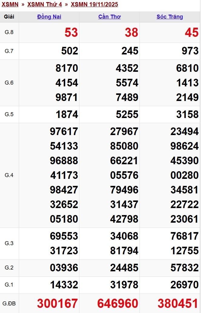 XSMN 19/11/2025 - Kết quả xổ số miền Nam hôm nay 19/11/2025
